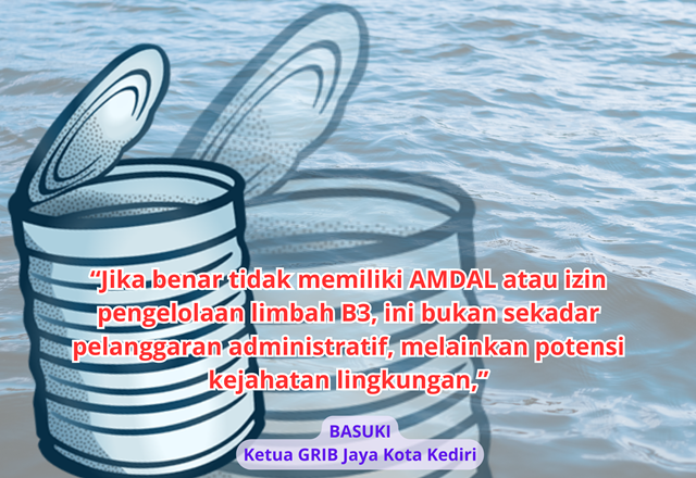 “Jika benar tidak memiliki AMDAL atau izin pengelolaan limbah B3, ini bukan sekadar pelanggaran administratif, melainkan potensi kejahatan lingkungan,” tegasnya.