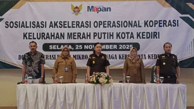 KEDIRI – Upaya Pemerintah Kota Kediri untuk mempercepat beroperasinya Koperasi Kelurahan Merah Putih semakin digencarkan. Salah satunya melalui kegiatan Sosialisasi Akselerasi Operasional Koperasi Kelurahan Merah Putih yang digelar Selasa (25/11) di Insumo Palace Hotel. Agenda ini menekankan pentingnya kesiapan kelembagaan, manajemen, hingga rencana pembangunan gerai di masing-masing kelurahan.