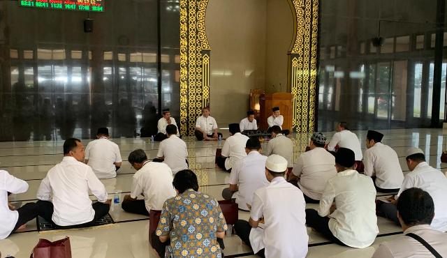 KEDIRI – Lantunan ayat-ayat suci Al-Qur’an mengalun lembut memenuhi ruang Masjid Asy-Syifa’ RSUD Gambiran Kota Kediri pada Jumat (28/11). Dalam suasana yang khusyuk dan menenangkan, segenap jajaran manajemen hingga seluruh sivitas rumah sakit larut dalam Khotmil Qur’an yang digelar untuk menandai perjalanan panjang RSUD Gambiran menuju usia ke-150 tahun. Kehangatan kebersamaan berpadu dengan kedalaman spiritual, menciptakan momen syukur yang tak hanya menggetarkan hati, tetapi juga mempererat silaturahmi di antara seluruh keluarga besar rumah sakit.