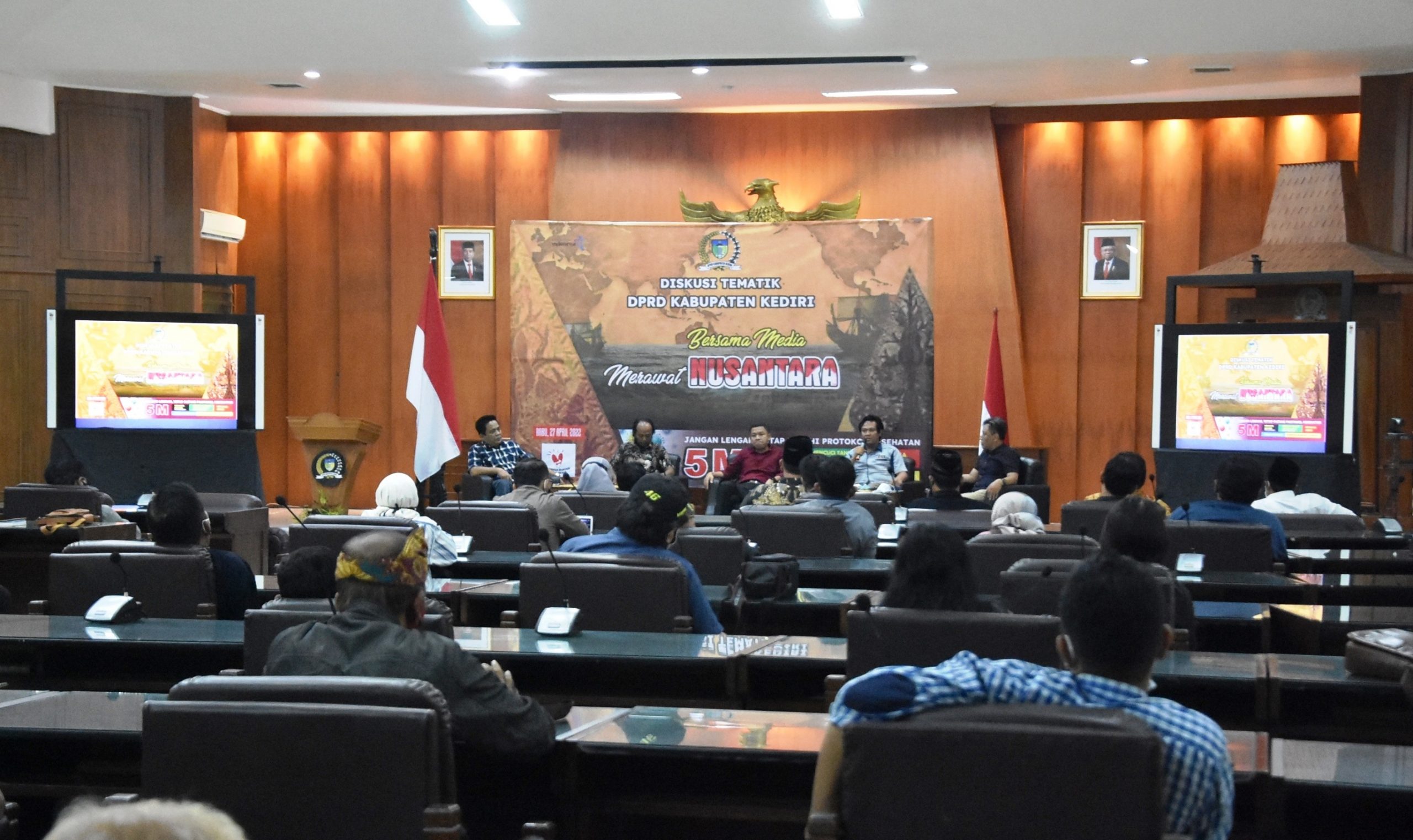 KEDIRI – Bertempat di ruang Graha Sabha Canda Bhirawa, DPRD Kabupaten Kediri mengadakan kegiatan Diskusi Tematik Pimpinan DPRD dengan para insan media pers dengan tema ”Bersama Media, Merawat Nusantara”. Kegiatan diskusi DPRD bersama media ini dibuka langsung oleh Dodi Purwanto selaku Ketua DPRD Kabupaten Kediri didampingi Wakil Ketua DPRD Drs. Sigit Sosiawan, SE, bersama Ketua Komisi I, Ketua Komisi II dan Ketua Badan Kehormatan DPRD.