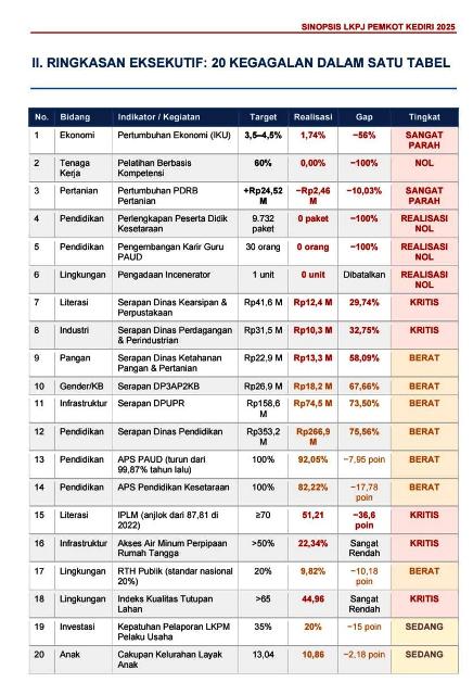 Dalam draf evaluasi yang beredar, terdapat sekitar 20 poin yang disorot, dengan fokus pada sektor UMKM, ketenagakerjaan, pendidikan, hingga lingkungan hidup.