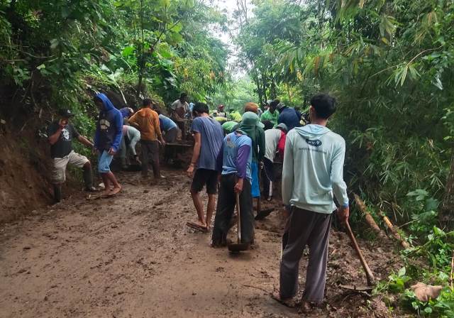 Material tanah dan lumpur sempat menutup badan jalan sehingga mobilitas warga terganggu. Namun, berkat kerja bakti warga secara gotong royong, akses jalan kini sudah kembali dapat dilalui meski belum sepenuhnya aman dari risiko longsor susulan.