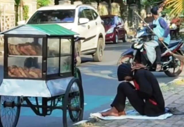 “Umpani jawah mboten sadean, kademen kulo, sikil rasane ngetok-ngetok, rematik (kalau hujan tidak jualan, kedinginan saya, kaki rasanya sakit, rematik,” kata penjual roti berusia 60 tahun itu.