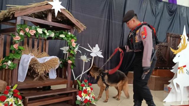 Langkah preventif ini melibatkan personel Sat Samapta bersama unit K9 sebagai upaya antisipasi terhadap potensi gangguan keamanan, termasuk kemungkinan ancaman bahan peledak. Dengan penuh kehati-hatian, petugas menyisir setiap sudut gereja demi menciptakan rasa aman bagi jemaat.