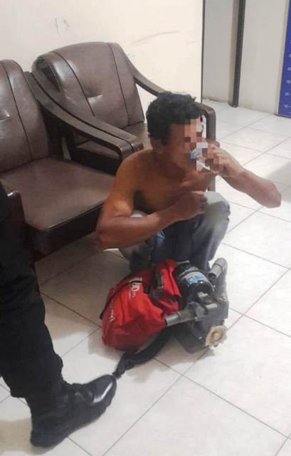 Dari tangan pelaku, polisi menyita satu unit mesin pompa air merk Shimizu tipe 130 warna biru yang disembunyikan di dalam tas merah. Selain itu, turut ditemukan dua buah tang, masing-masing tang pemotong pipa dan tang biasa, yang diduga digunakan untuk membongkar instalasi air di rumah korban.