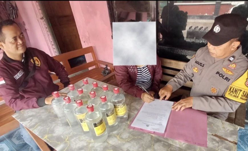 NP diamankan karena diduga menyimpan sekaligus menjual minuman keras tanpa izin resmi di rumahnya yang difungsikan sebagai warung kecil. Dari lokasi, petugas menyita 10 botol minuman keras merek Bintang Kuntul sebagai barang bukti.